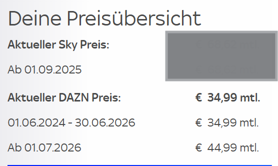 Nach Ablauf der ersten 12 Monate wird im Sky Kundencenter automatisch ein neues DAZN Vertragsdatum gesetzt, und das Abo geht in einen monatlichen Vertrag zu einem höheren Preis über. Dies ist bei Dir nicht geschehen. Zudem wurde noch der alte Betrag für das Jahresabo weiter abgebucht.