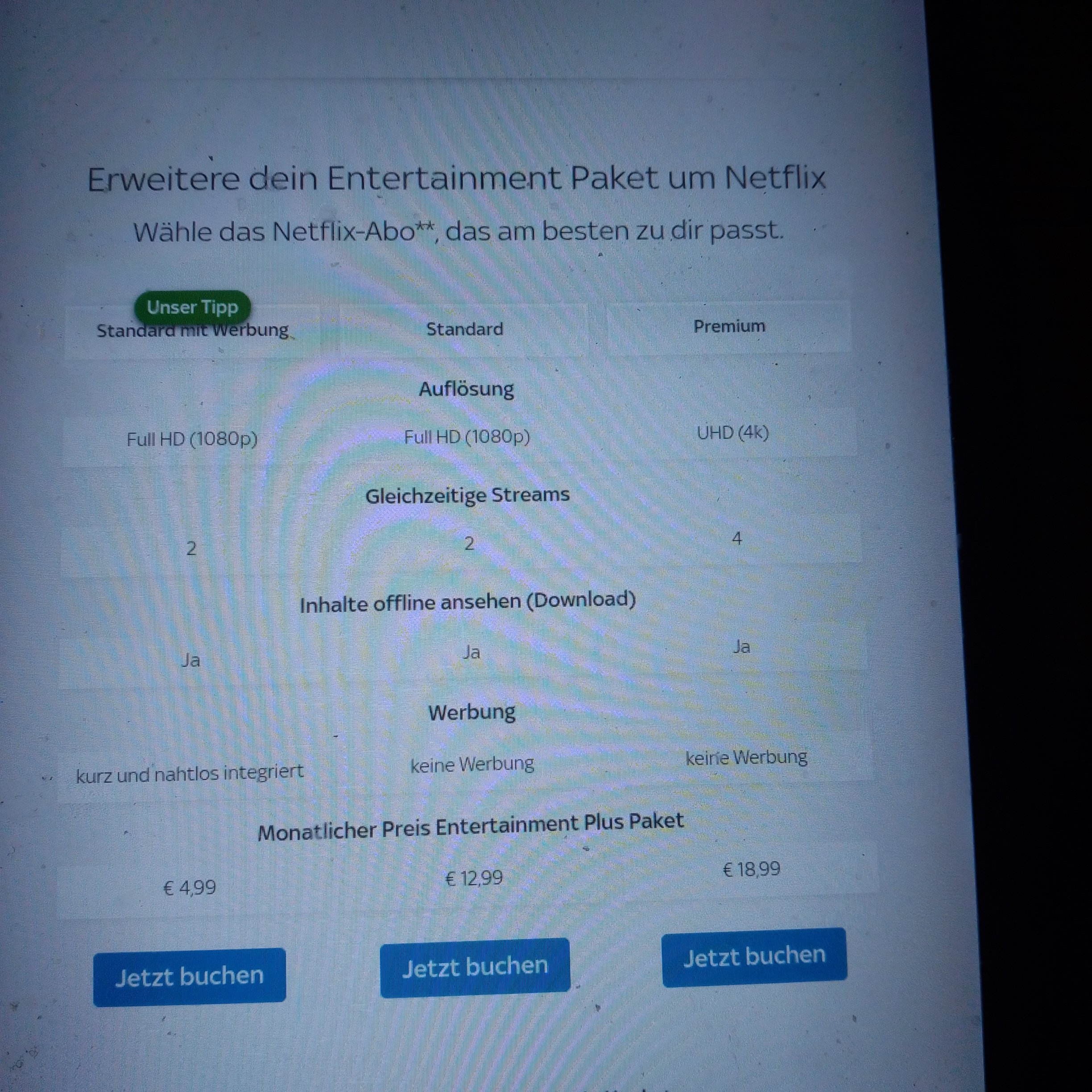 ich möchte mine Sky ABO um "Entertainment + inkl.Netflix erweitern.