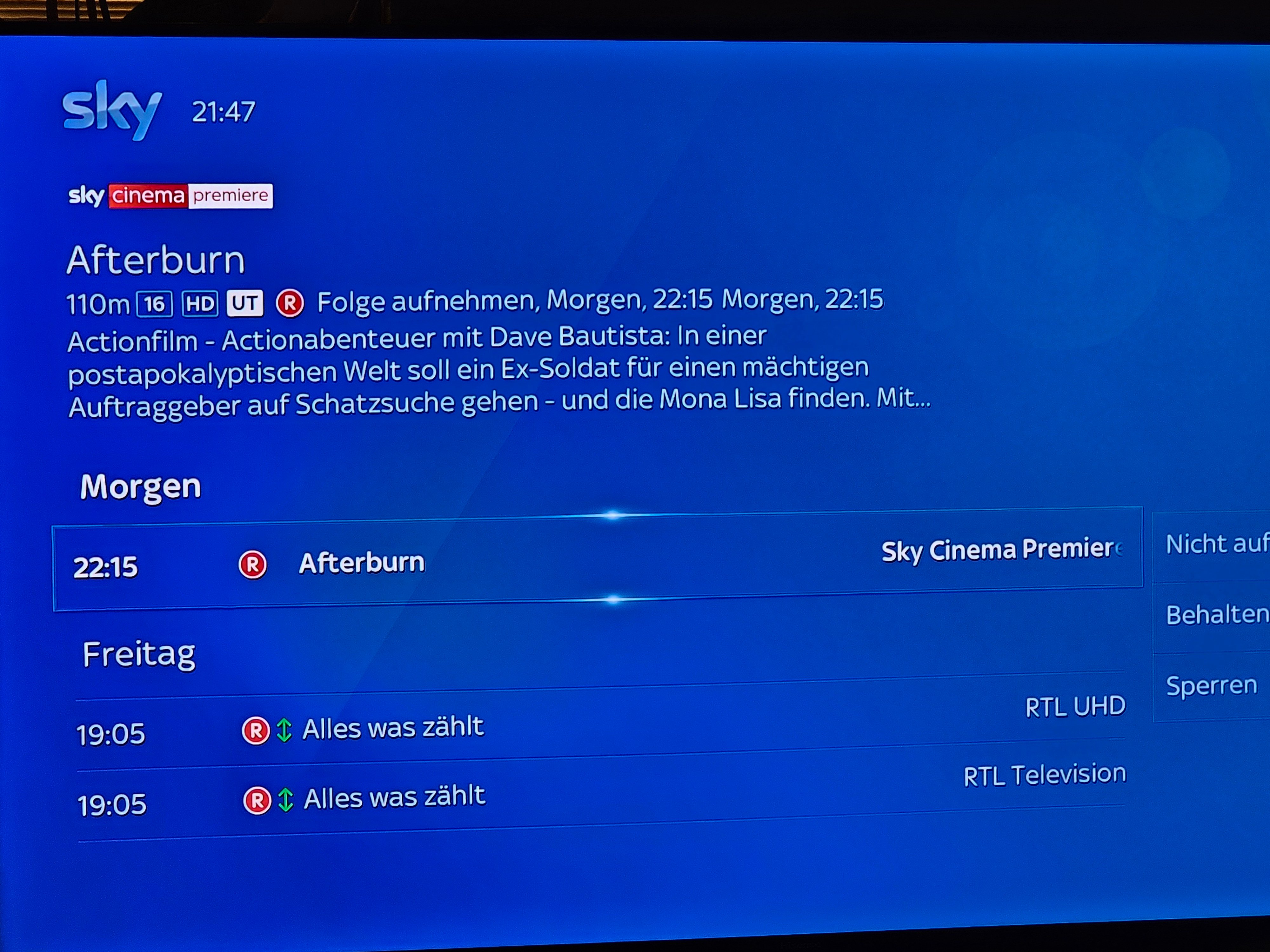 Immer, wenn ich diese dort programmiere, wird gleichzeitig eine Aufnahme bei RTL UHD angelegt.